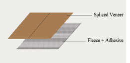 Under high pressure and heat, fleece is affixed to veneers made from all types of wood in a range of sizes. The result is a stable composite material that is significantly easier to work with than ordinary veneer. Even delicate burl veneers are made smooth and even by the applied fleece and are less subject to breaks. The weight of the fleece and the type of adhesive determine the fleeced veneer's stability, strength and resistance to heat and humidity.
